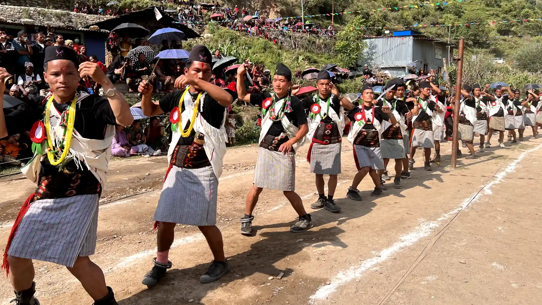 नाच्दै आउने क्रममा एक जलाकी भेटीन्छ त्यहाँ एक मुर्ला गाडेर नयाँ फुल टिप्न गएको व्यक्तीलाई उक्त जलाकी वोकेर घुमाउछन् । वुढापाकाका अनुसार वोकेर घुमाएपछि वोकी माग्नेलाई शुभ हुन्छ भनेर एक दुई पैशा पन्थ्यौली अथवा जलाकीमा चढाउछन् । केहि तल आएपछि युवतिहरु वुकीवाट टिपेर लिएको केही फुललाई माला वनाएर पुरुषको समुहलाई लगाइदिन्छन् । गाउँको नजिक आउँदा फुल माग्नेहरुको लस्कर हुन्छ । उनीहरु रक्सी, रोटीलिएर भोकाएर आएका फुल टिप्न जाने समुहलाई स्वागत गर्छन् । वुकीवाट फुल टिपेर आउने समुहले फुल माग्नेलाई फुल दिएर सम्मान गर्छन भने फुल शिरमा समेत लगाईलिन्छन् । थर्किमा पुगेपछि सवैलाई शिरमा फुल लगाएर सम्मान गर्छन् । केही चाला नाचे पश्चात फेरी गाउँ घुमेर नाची थर्कीमा आई त्यस दिन अन्त्य गर्छन् ।